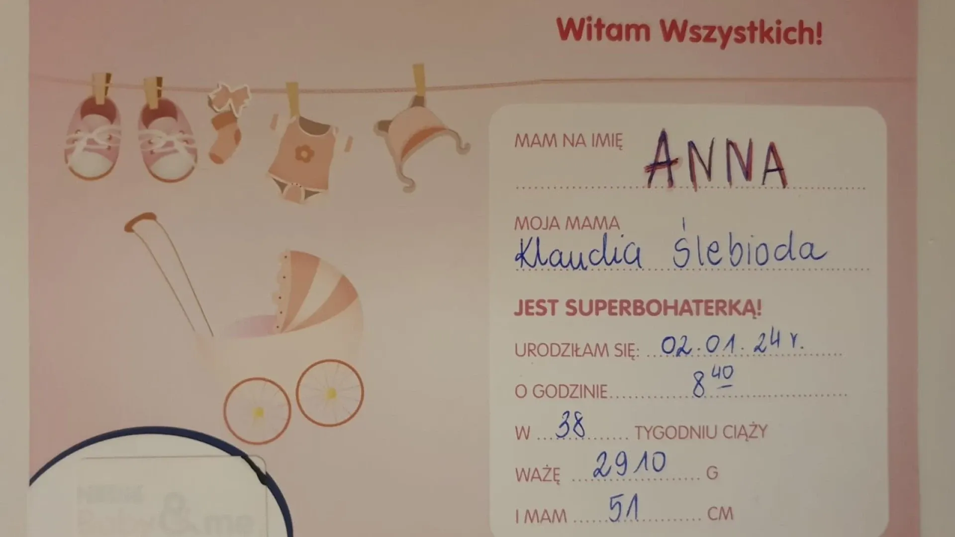O 8.40 urodziła się natomiast Anna, która waży 2910 g i ma 51 cm. Mama Klaudia i tata Kamil są bardzo dumni z córeczki.