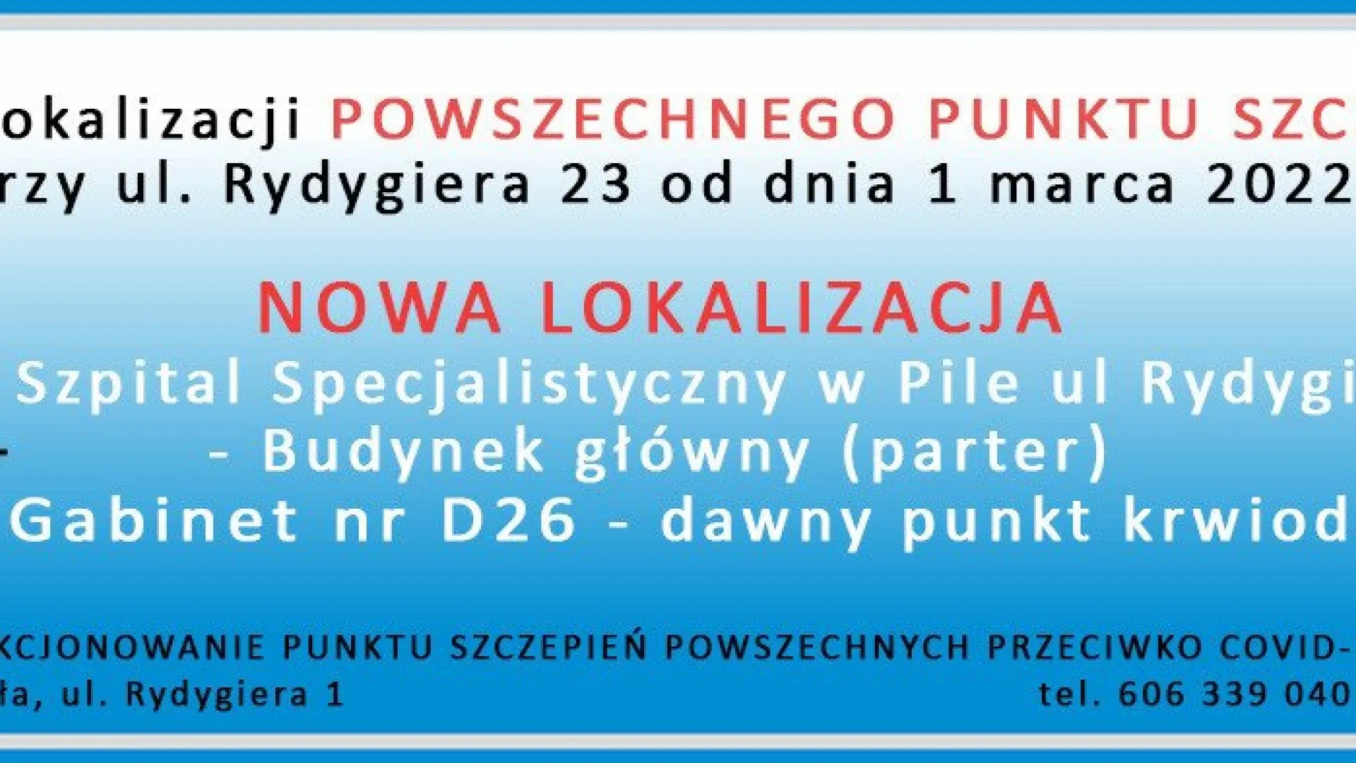 Zmiana lokalizacji Powszechnego Punktu Szczepień przy ul. Rydygiera 23 od dnia 1 marca 2022r.