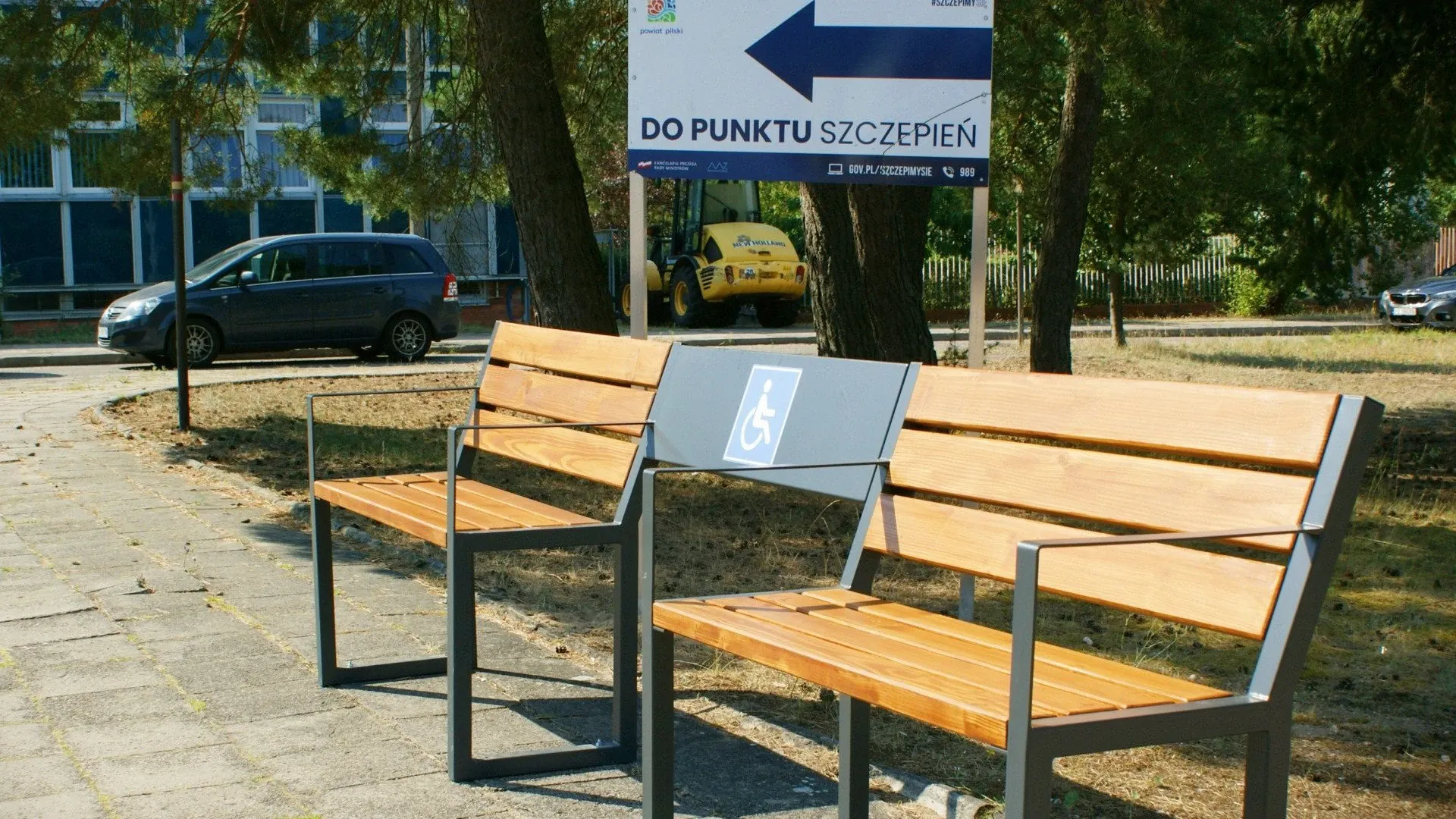 Ławki posiadają oparcia i podłokietniki ułatwiające wstawanie. W bezpośrednim sąsiedztwie siedziska zapewniono miejsce do odłożenia sprzętu rehabilitacyjnego. Ławki zostały wyposażone w miejsce, które pozwoli na odpoczynek osobom poruszającym się na wózku inwalidzkim.