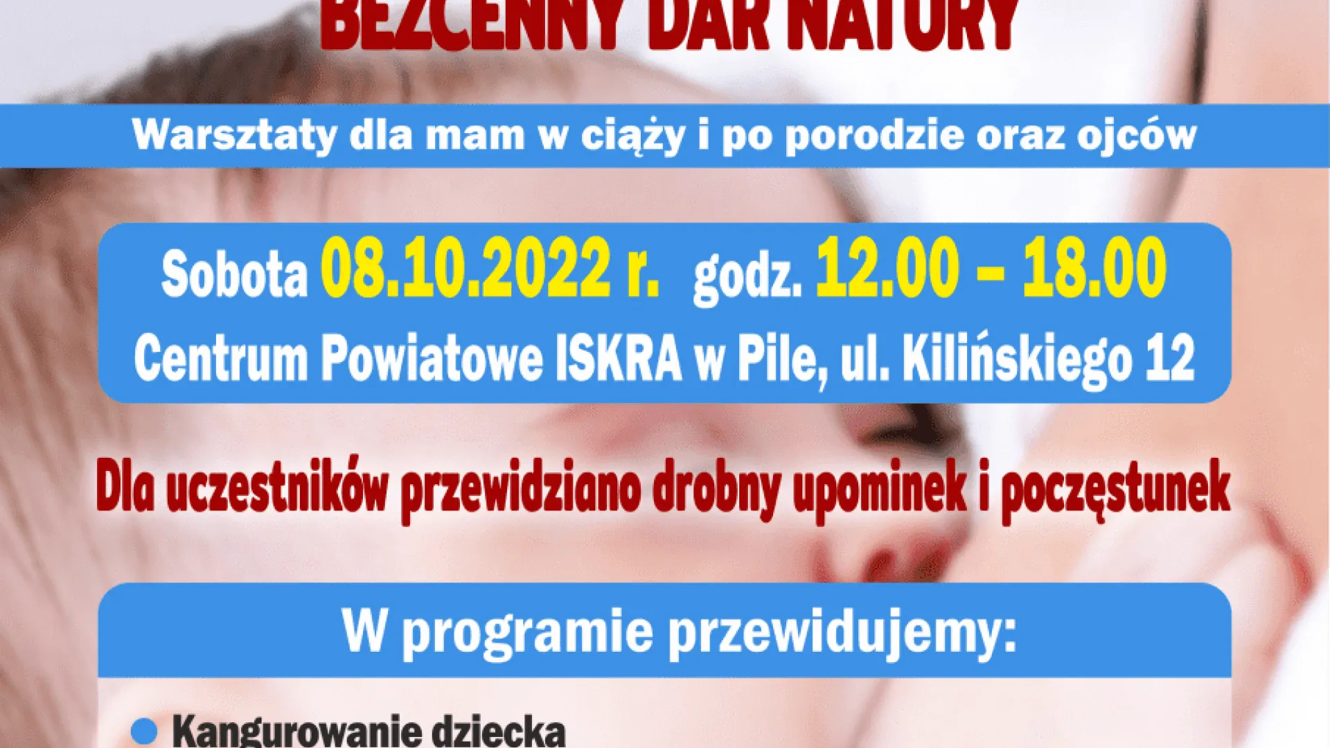 Szpital Specjalistyczny w Pile im. Stanisława Staszica w Pile zaprasza na warsztaty dla mam w ciąży i po porodzie oraz ojców, które odbędą się już w najbliższą sobotę (tj. 8 października) w Centrum Powiatowym „Iskra” w Pile.