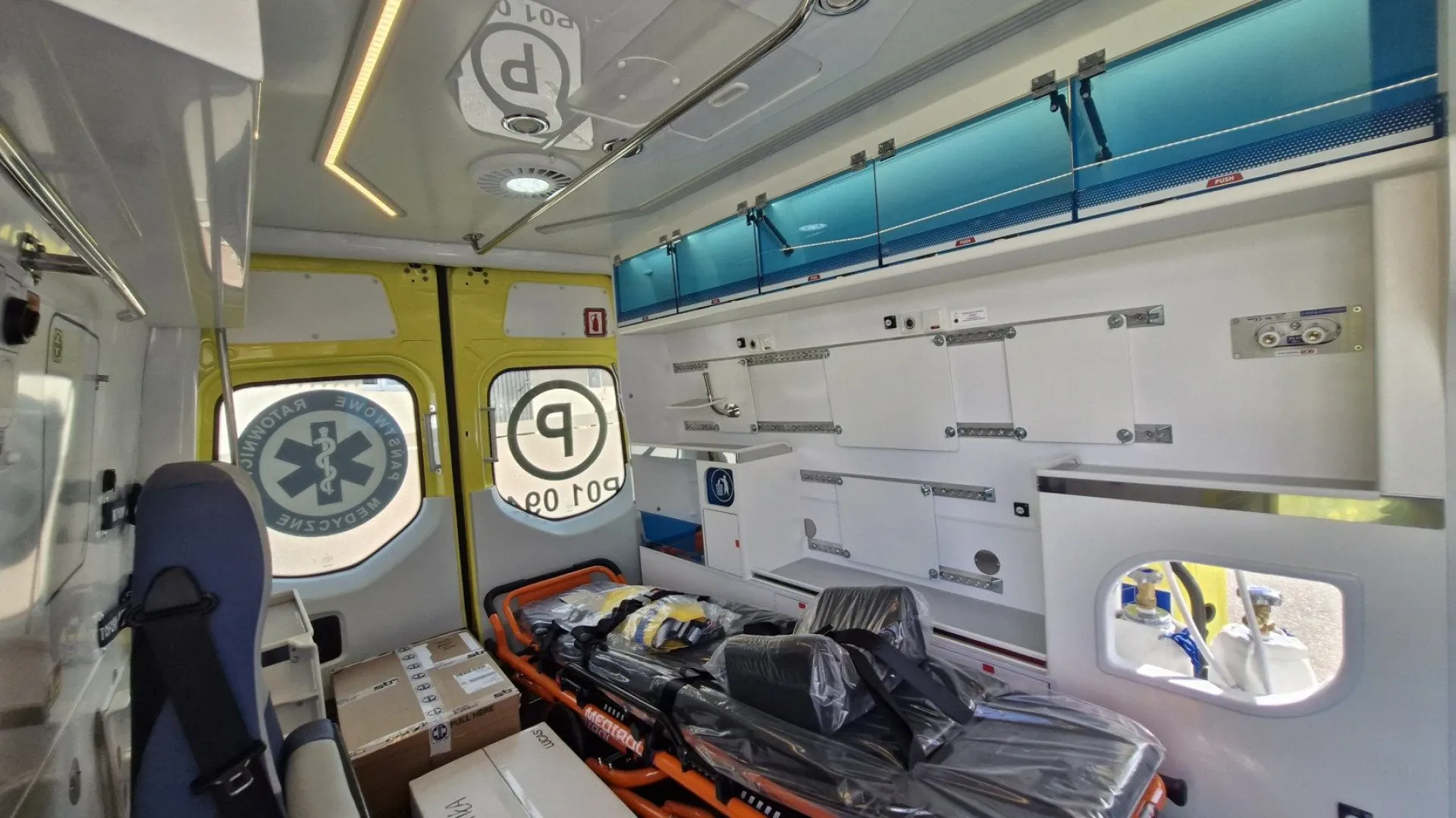 Wnętrze pojazdu zostało zaprojektowane z myślą o ergonomii, bezpieczeństwie i komforcie — zarówno dla personelu medycznego, jak i transportowanych pacjentów. Ambulans został także kompletnie wyposażony w nowoczesny sprzęt medyczny, niezbędny do udzielania pomocy w stanach zagrożenia życia, co czyni go w pełni gotowym do natychmiastowego działania w systemie Państwowego Ratownictwa Medycznego.