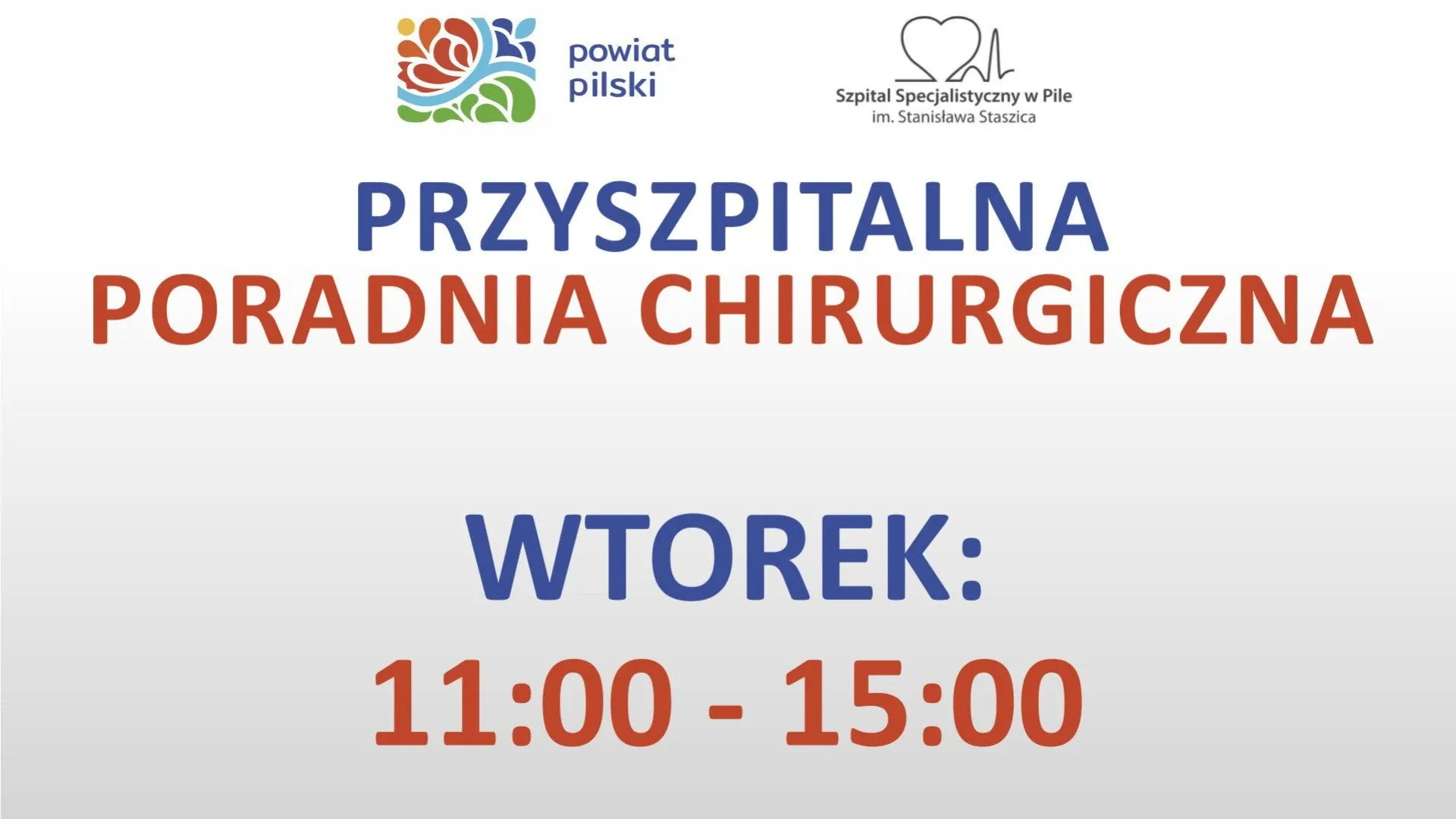 • Przyszpitalna Poradnia Chirurgiczna – we wtorki w godzinach od 11.00 do 15.00