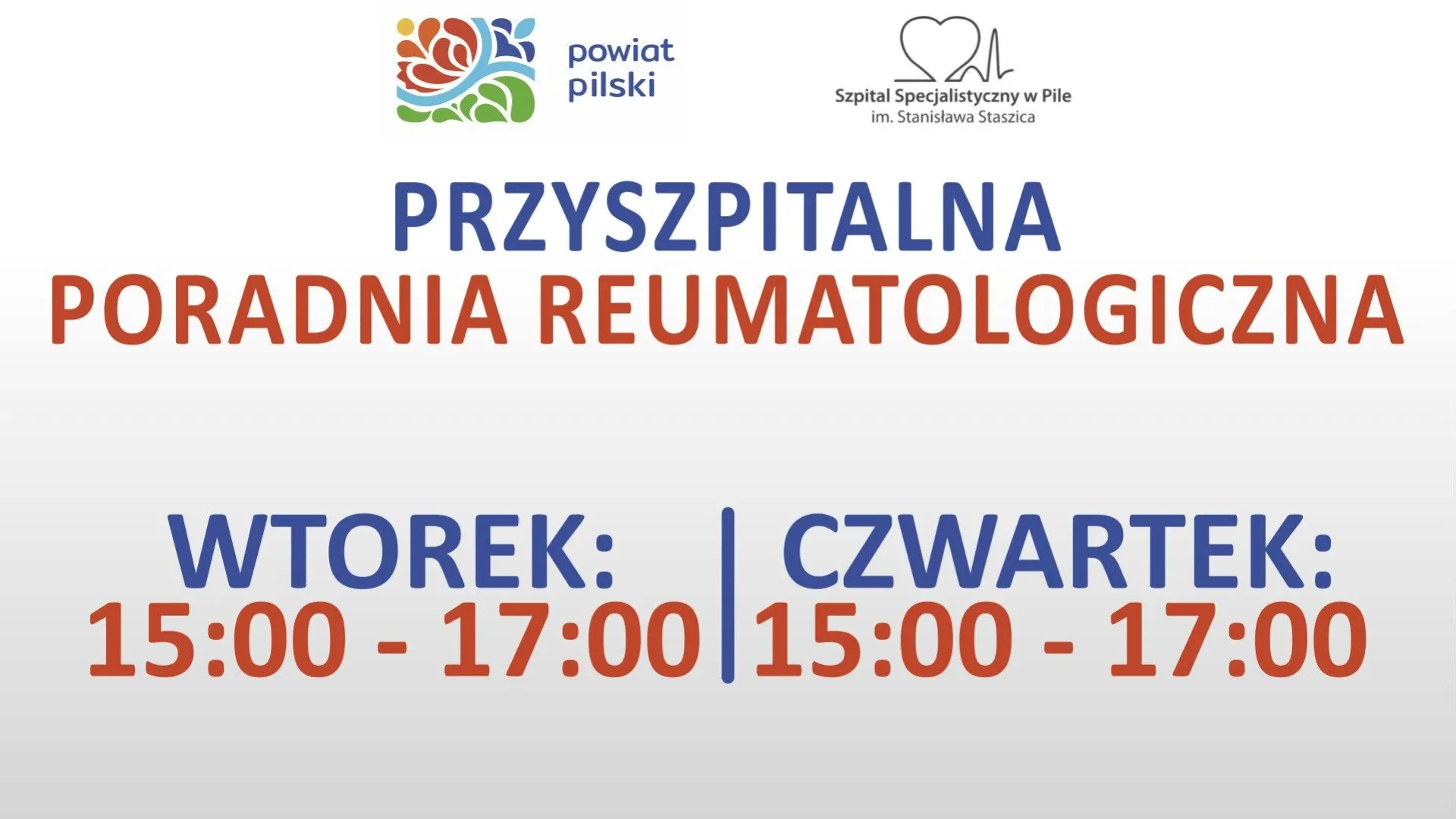 • Przyszpitalna Poradnia Reumatologiczna — we wtorki i czwartki od godziny 15:00 do 17:00