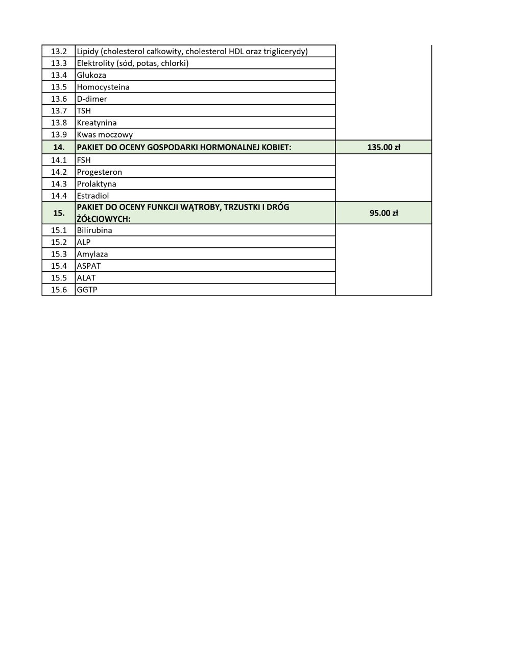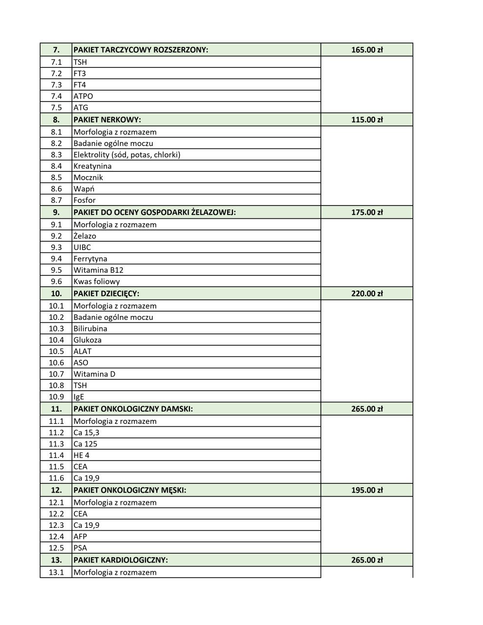 | 1. | C55 | Morfologia krwi poszerzona (z rozdziałem leukocytów na 5 populacji) | 100,00 zł |